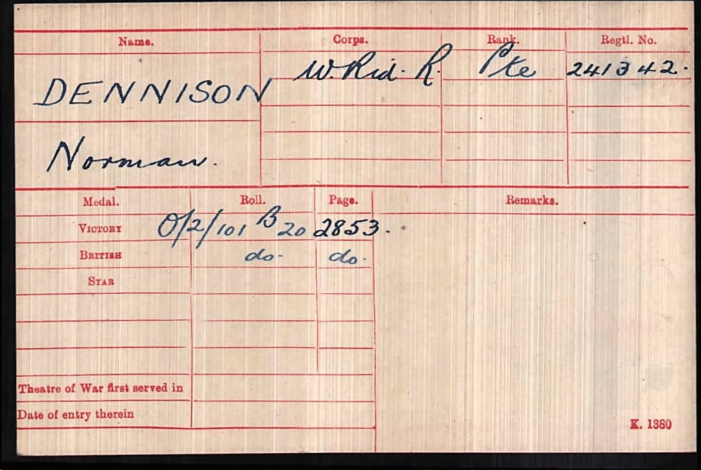 After a long search Norman Dennison has finally been found, thanks to Isabel Fogg and Peter Bennett the WW1 project – Dewsbury sacrifices.