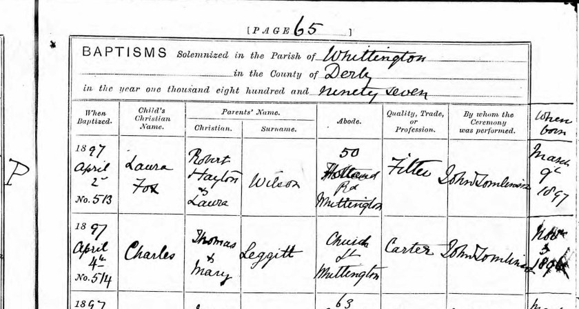 Old Whittington Burials 1895
