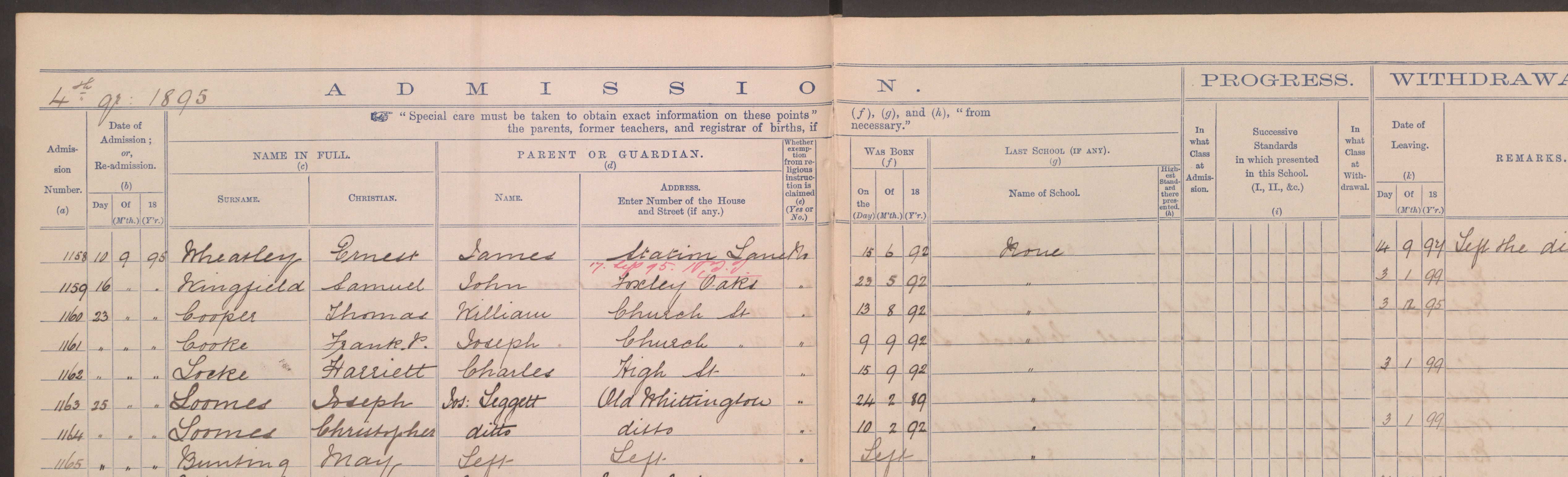 Old Whittington Burials 1895
