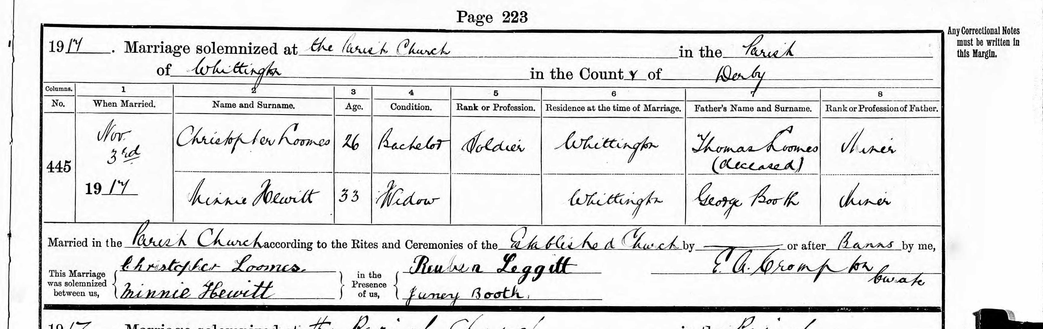 Old Whittington War Memorial people places trades Sydall Swanwick