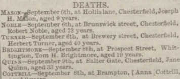 The following year (1882) Elizabeth lost another son, Tom Herbert who died on September 8th 1882 aged 19. His death was announced in the Derbyshire Times on 16th September 1882.
