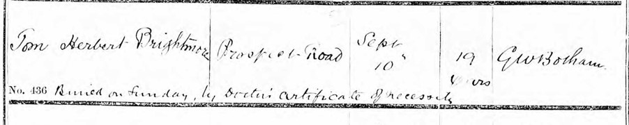 In 1881 there would be more sadness for the Brightmore family when Frank was killed in an accident at the age of 14. According to the burial record, where he is listed as Francis, he was a chorister at St Bartholomews and he was ‘killed by a railway wagon running over him’.