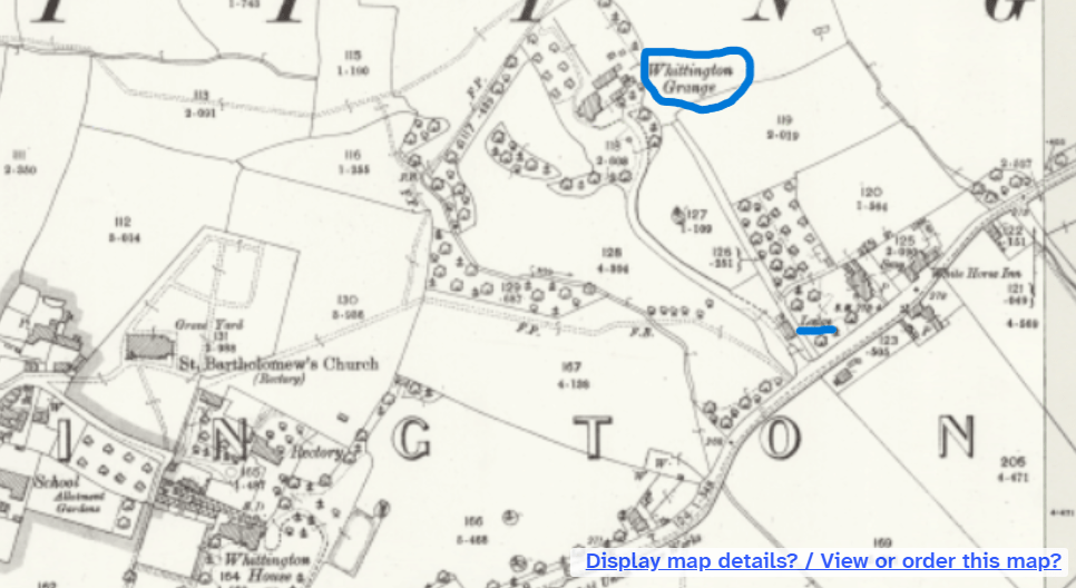 The map below dated 1892-1914 shows Whittington Grange with the Lodge house indicated near the main road.